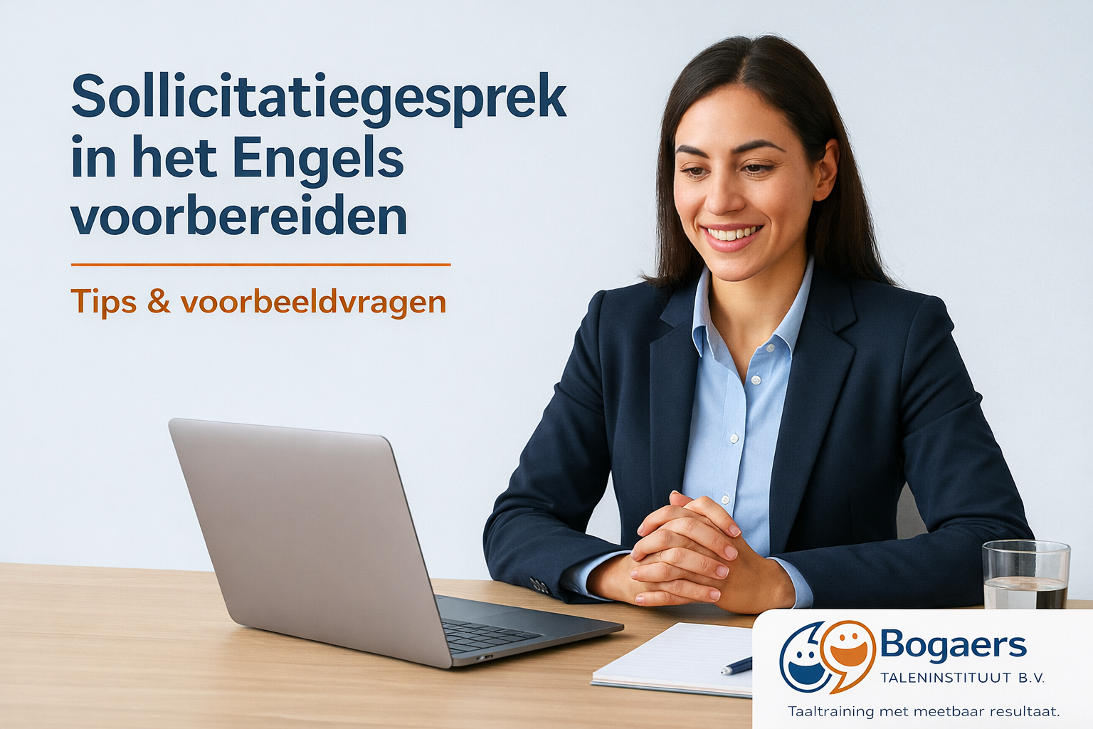 Het goede nieuws: met de juiste voorbereiding kun je dat gesprek net zo goed voeren als in het Nederlands. Je hebt concrete handvatten nodig: veelgestelde vragen, sterke voorbeeldantwoorden en professioneel vocabulaire dat past bij een zakelijke setting. Precies dat soort taalvaardigheid trainen wij dagelijks bij Bogaers Taleninstituut in Tilburg, waar we professionals klaarstomen voor situaties waarin het écht telt.