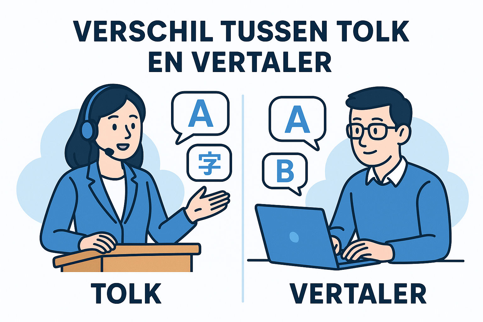 Het verschil tussen tolk en vertaler zit in de kern van het werk: de vorm van taal. Een tolk werkt met gesproken communicatie, terwijl een vertaler zich bezighoudt met geschreven tekst. Beide professionals zetten inhoud over van de ene taal naar de andere, maar de omstandigheden, het tempo en de vereiste vaardigheden verschillen sterk.