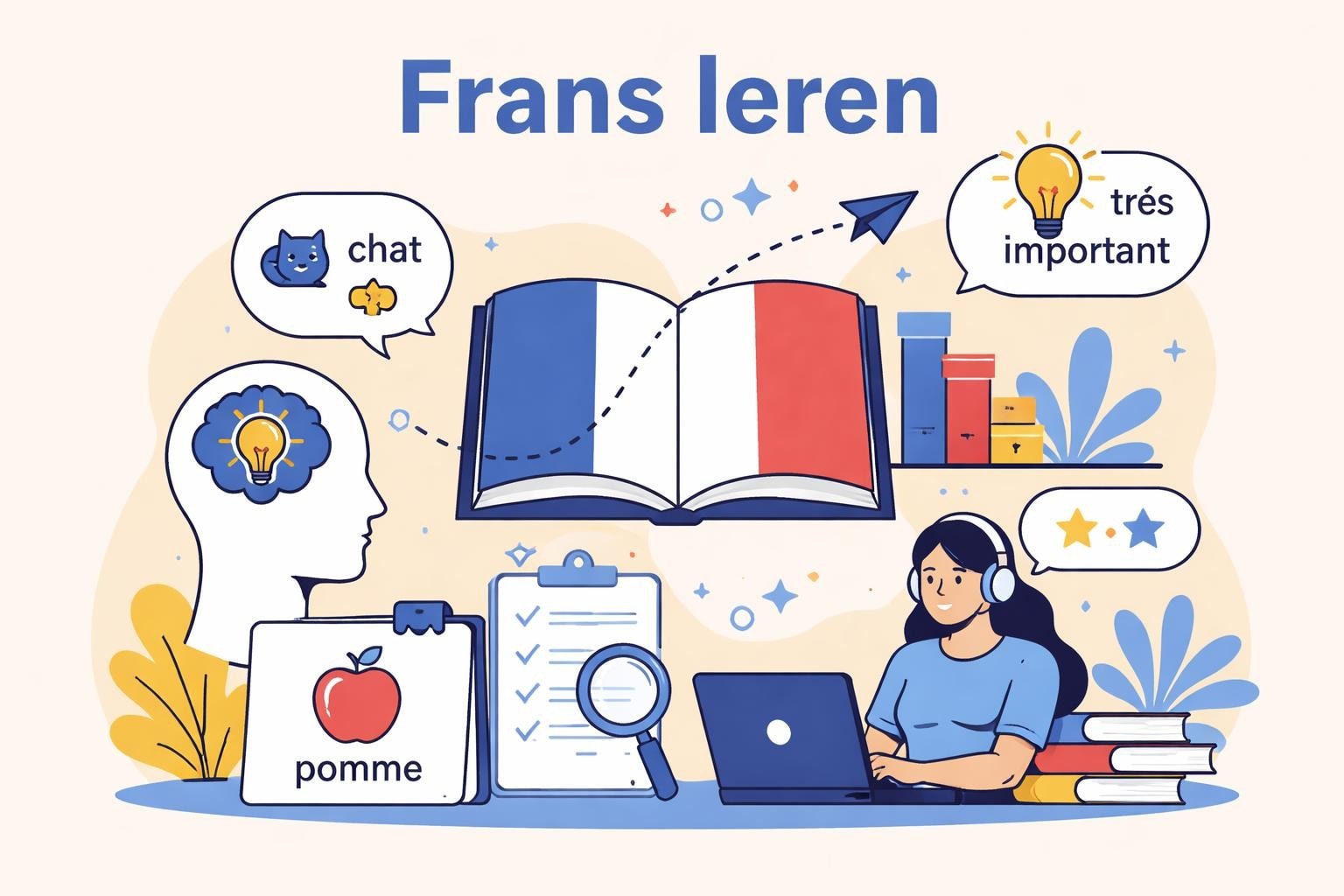 Het woordjes leren frans wordt aanzienlijk effectiever wanneer je technieken toepast die gebaseerd zijn op cognitieve wetenschap en geheugenstudies.